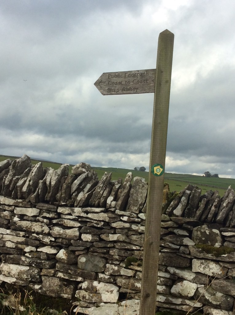 ‘Are you looking for the Coast to Coast?’ ‘Nay’ I answered, for that is the way folk converse up here. ‘Nay, I’m wondering whether to go up the hill road or down the valley path. The paths so far have been awfully boggy and slippy.’ He let out an involuntary guffaw at my namby pamby nature.
