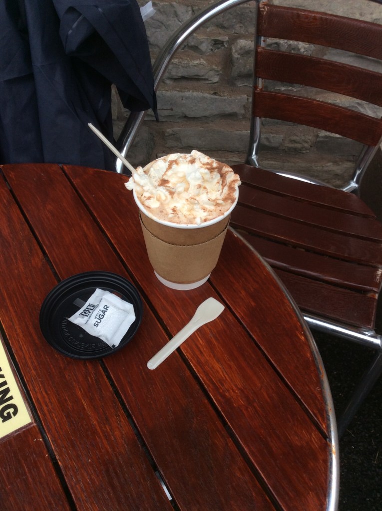 We got a cup of tea to go in Ravenscar and switched from the undulating Coast path to the Cinder Trail, an old railway line. No steam trains here.