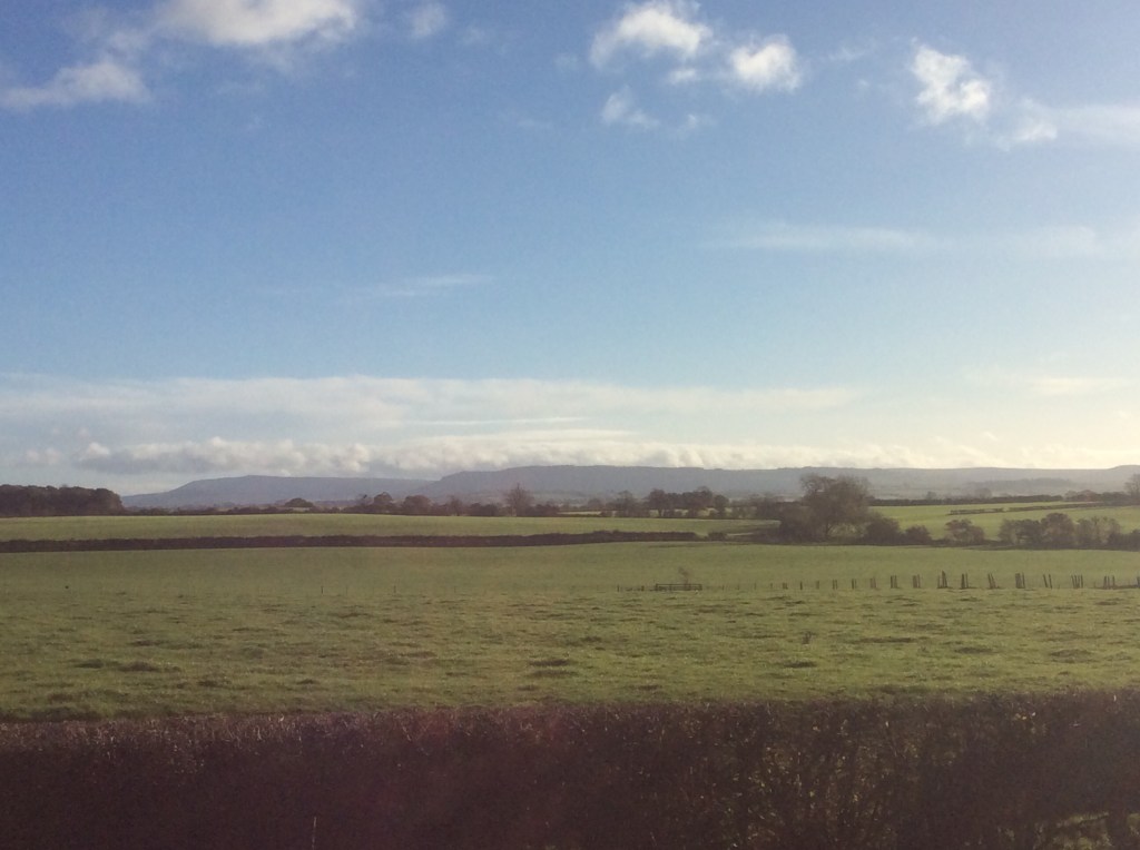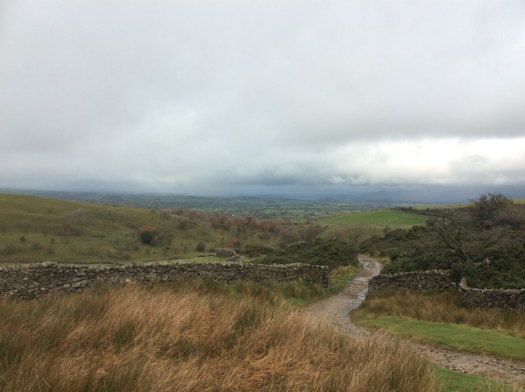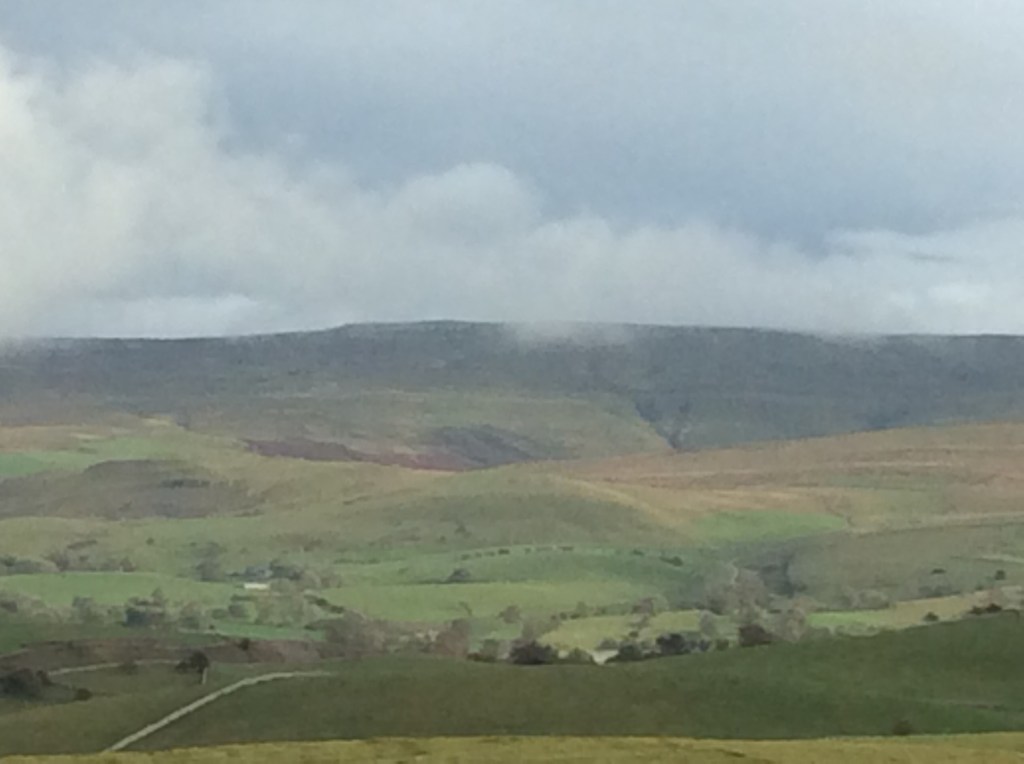The Yorkshire Dales were emerging to the south. Is that Whernside second in from the right? Is it Pen Y Ghent third from left? Not that far from home, but I’m skirting it to the north.