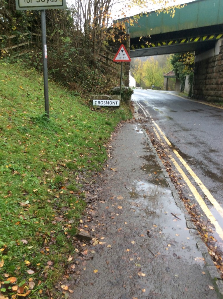 Dropping down into the Esk valley I was so wet that I didn’t want to take my gloves off to take photos. When my hands are wet I can’t get them back on. Glaisdale was shut, but there was a covered entrance to the local pub and it gimme me shelter (thanks Mick/Keith) to get my kit in better shape, re-tie the twine and dry out for ten minutes or so. In the valleys it isn’t cold but it’s the rain that gets your clothes and kit.