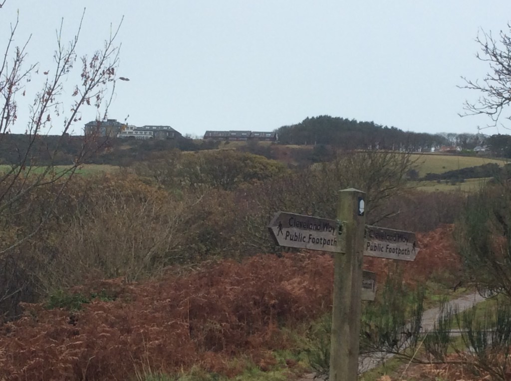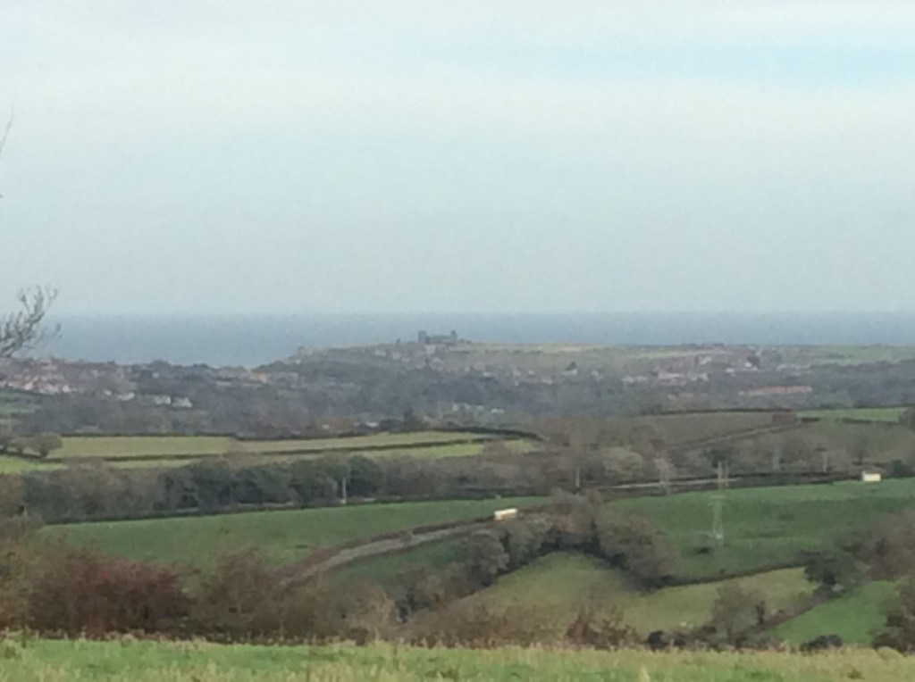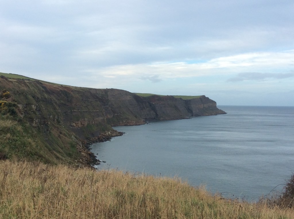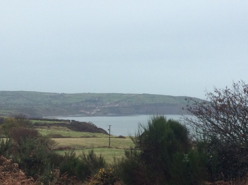 As Bob foresaw there was darkness at the break of noon. But by then we’d had an early breakfast and hit the muddily meandering Coast path to Ravenscar. With a view back towards RHB.