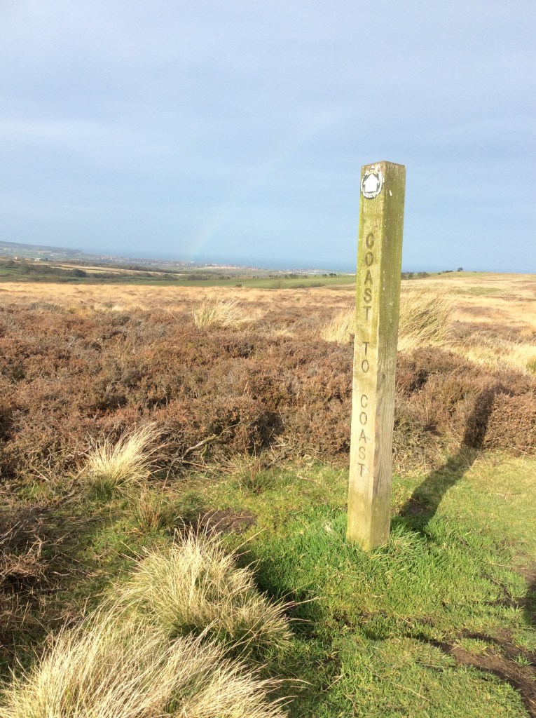 Starting to climb into theMoors was the first Coast to Coast way-sign that I’d seen with details of what was achieved and what needed to be achieved. My own details were a bit top heavier with distance and altitude as I’d climbed dem mountains in the Lakes and was walking on to Scarborough. Interesting though.
