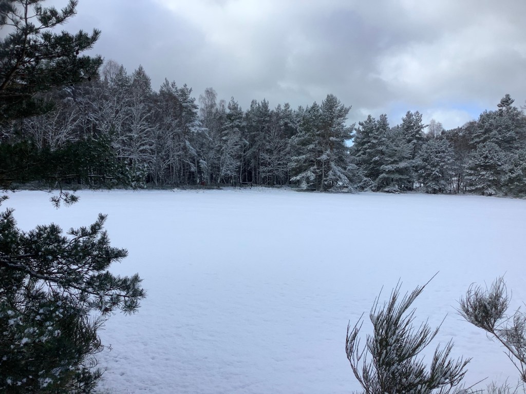 I really wanted to follow the last part of the Way down to Loch an Eilein, a beautiful Loch with a historic castle ruin on an island. But the snow got worse and I’d promised Maggie that I’d stay safe. It normally doesn’t bother me, even after my head bash. But my darling looked after me last year so I owed her much more than one. I cut through the hills to the road and marched as fast as I could on the tarmac.