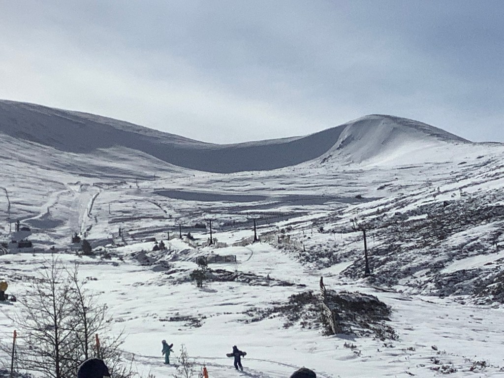 I got a bus from the hotel to the car park on Cairngorm. There was an awful lot of snow and no ski lifts were working for hillwalkers, only tows for skiers.