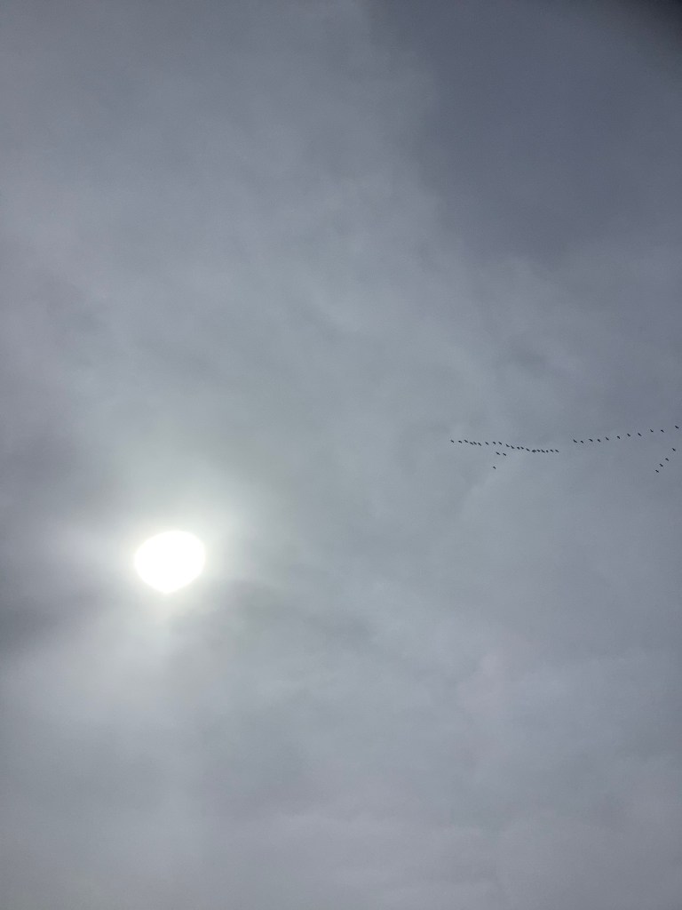 Near the summit the honking of a large flock of geese grew louder and they appeared out of the light cloud, at around 5,000 feet above sea level. Hardy migrants.