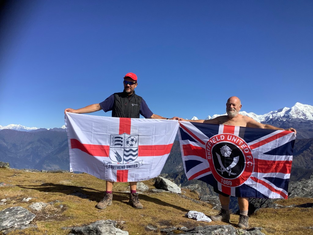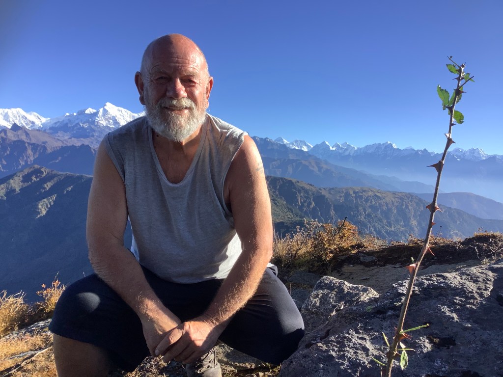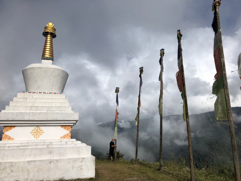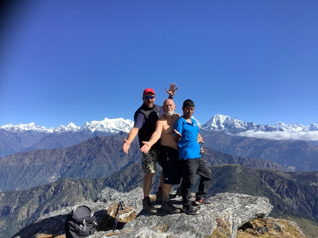 It was a fabulous moment. The temperature had warmed up and being able to see Tibet, Bhutan and India as well as the southward faces of many Himalayan peaks was astonishing from such a small mountain – only 13,000 feet. Pah! I wouldn’t get out of bed for 13,000 feet. Oh, I did. Well, only once then.