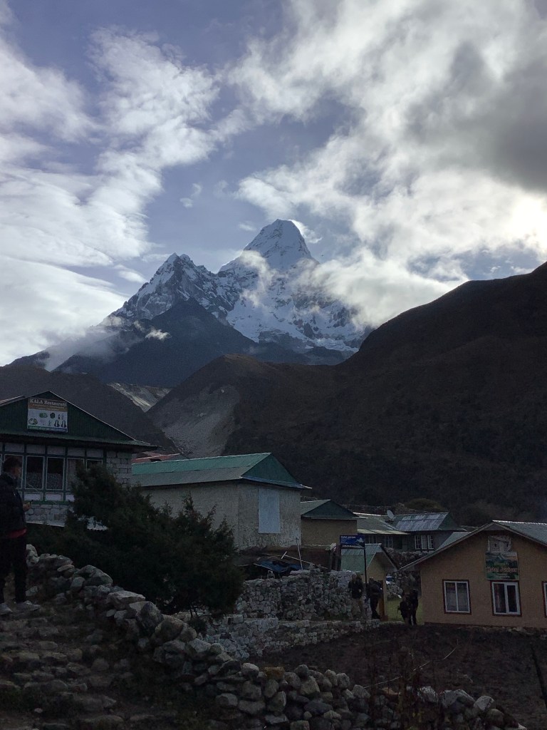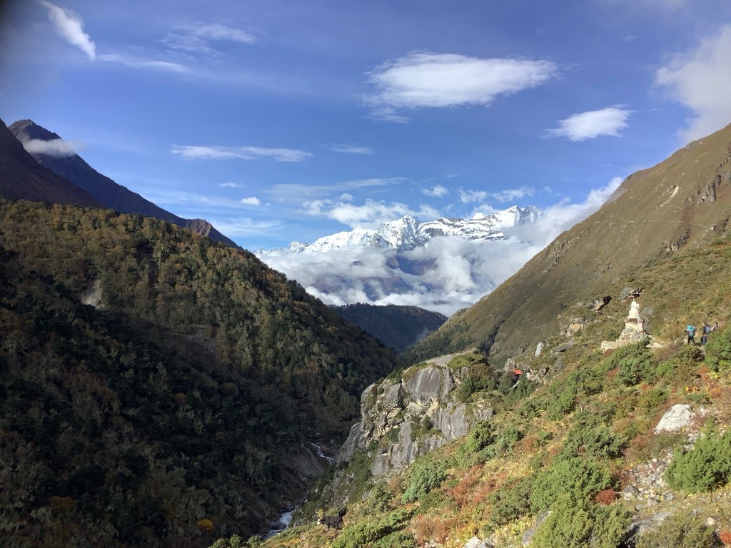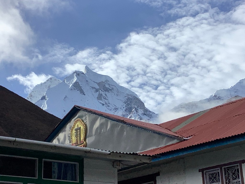 This is the luckiest trek ever for breaks in the clouds and magnificent views. In no time we reached the valley floor, crossed the Swinger and were beginning to climb up to the Buddhist monastery at Tengboche. And incredibly on the way, the monastery came to us! It was longer than this but I edited it to be able to upload it. Very impressive and humbling snaking down the valley.