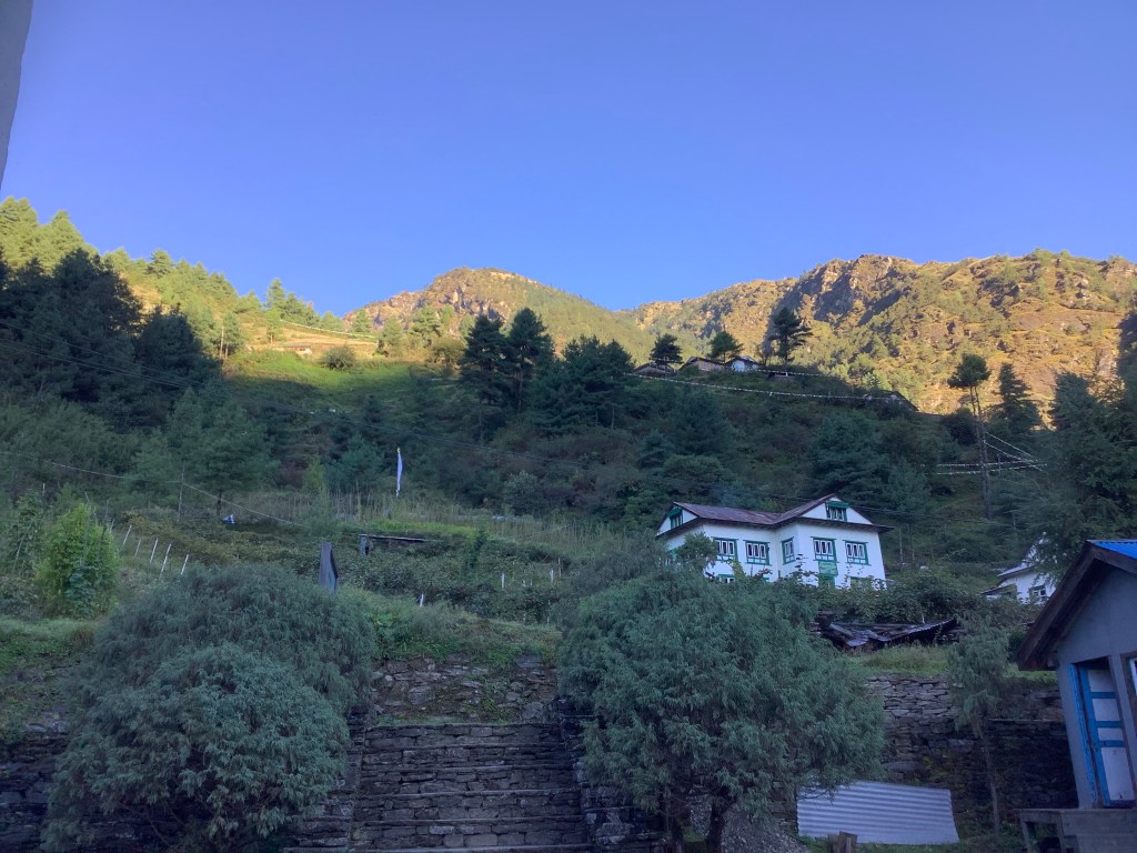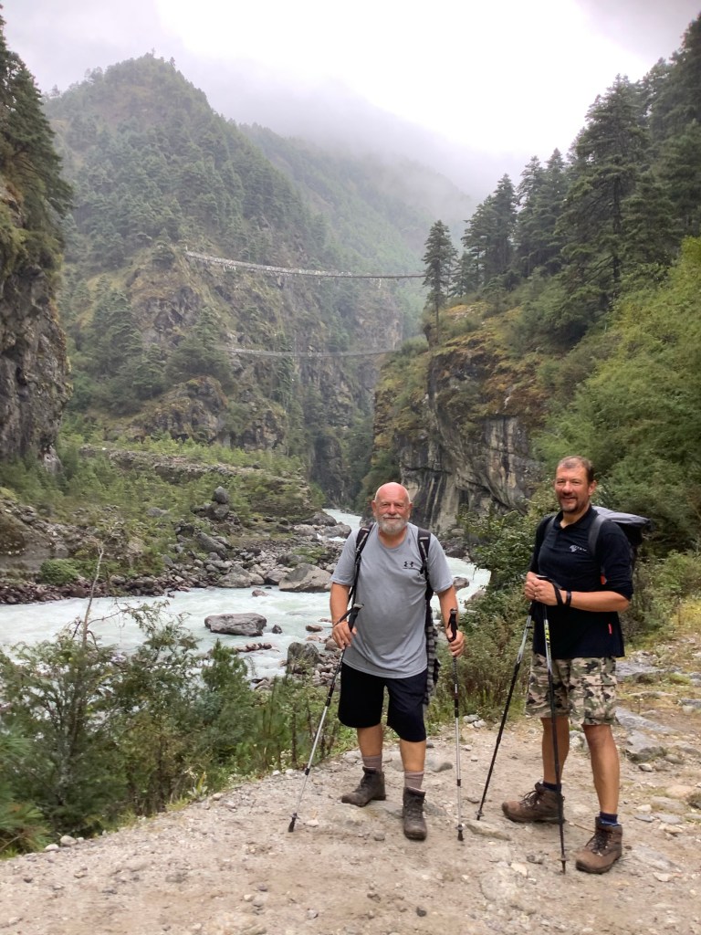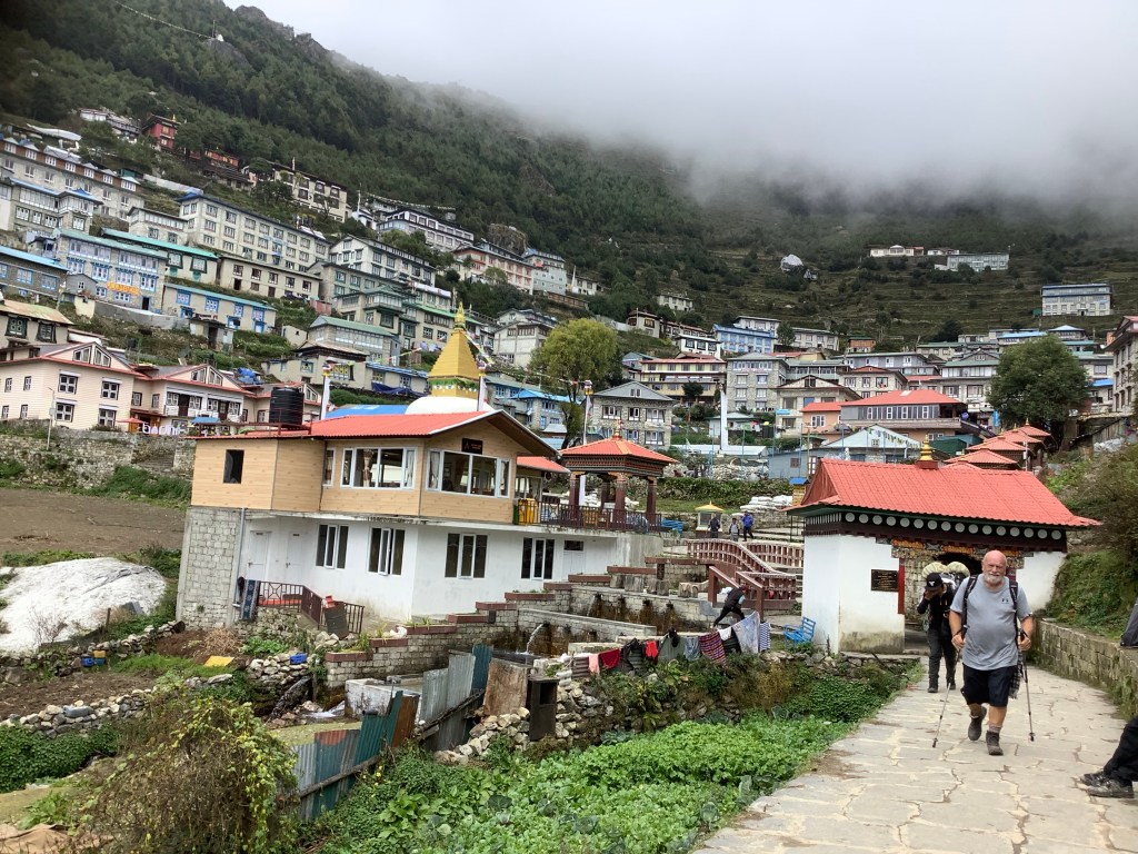 We found it, followed it and we’re glad that we did because Lukla airport was shut, and had been for a few days because the weather wasn’t good there. That meant that a horde of people due to fly in with Lukla tickets would be taking short flights or buses from Kathmandu and walking up the very valley that we are walking down, And competing for normally unused, and certainly scarce, accommodation.