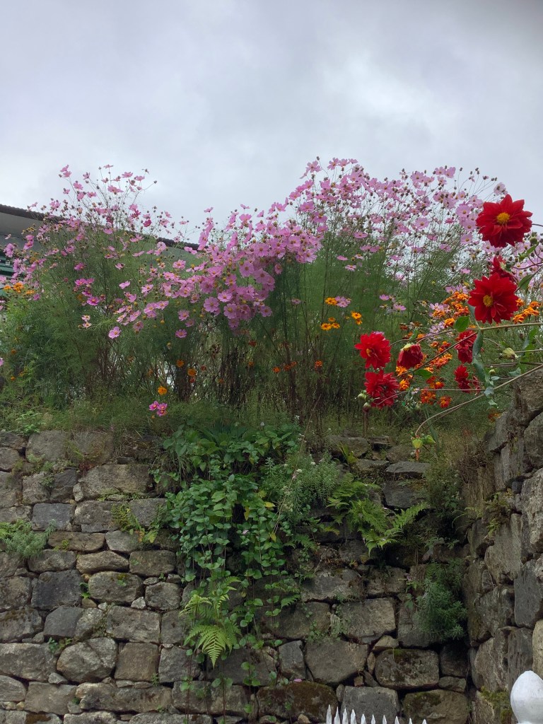 I was getting exhausted and struggling to make the downs as well as the ups. The weather turned to monsoon-like part way down the valley but we kept going. And there were bright points, like this garden.