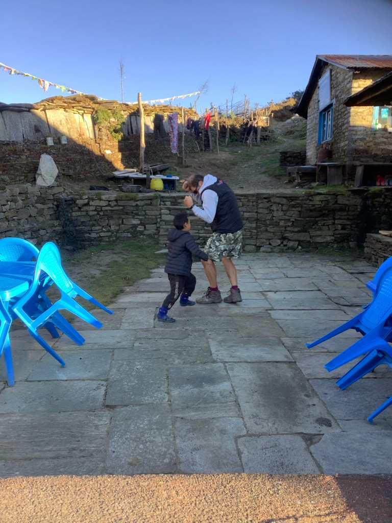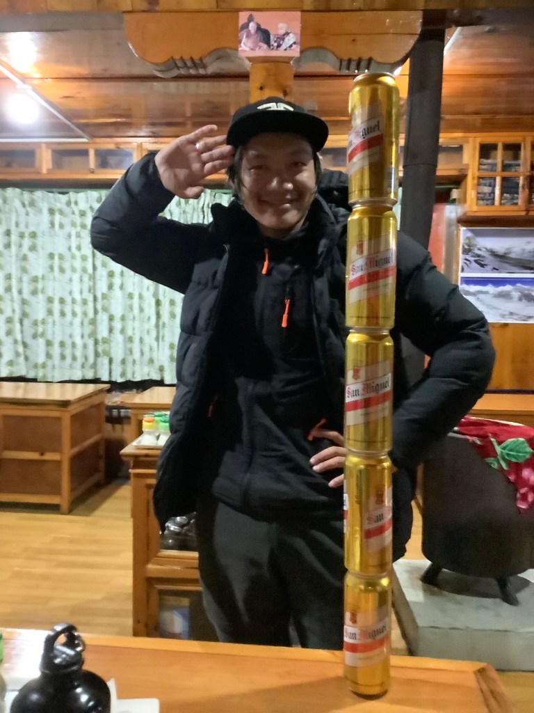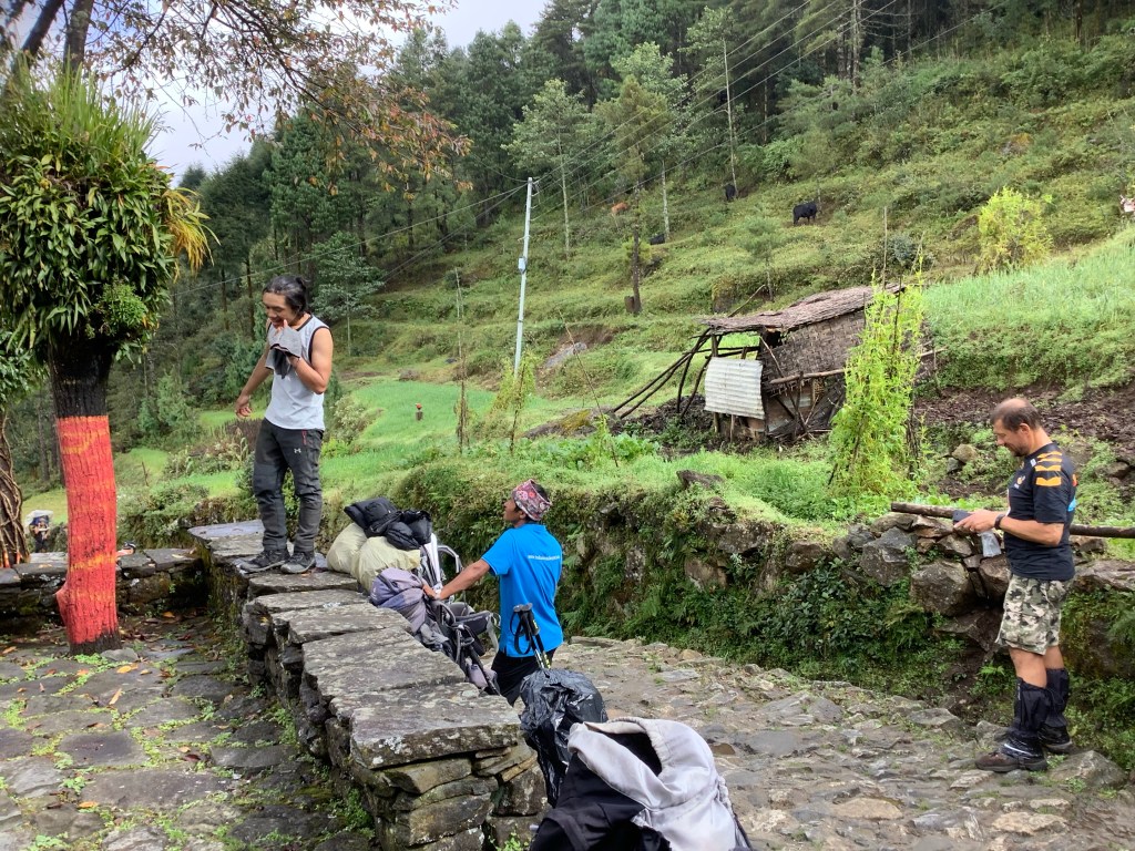 Then we were joined by Bisnu, Nir’s youngest brother, who is studying at University in Kathmandu but needed some dosh before term restarted. This was his first portering assignment. The porter is dead. Long live the porter!