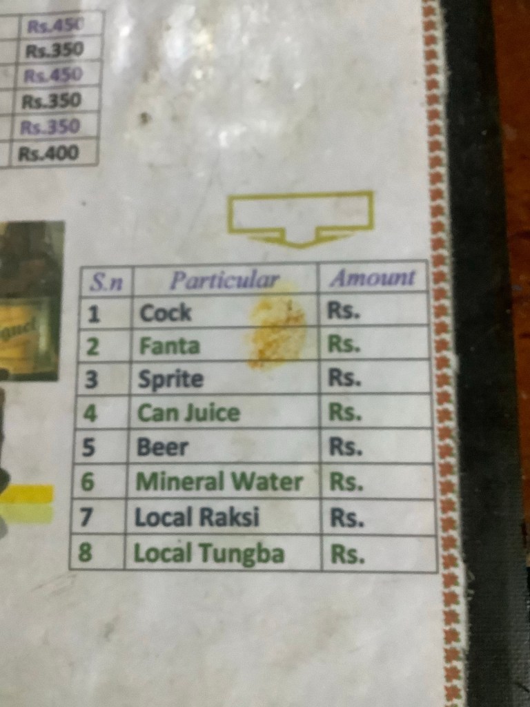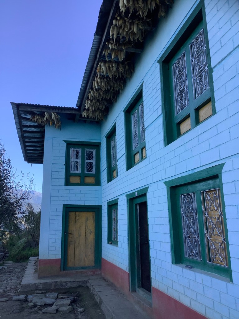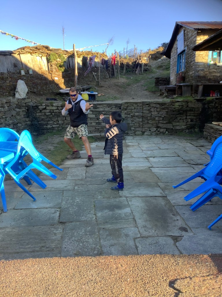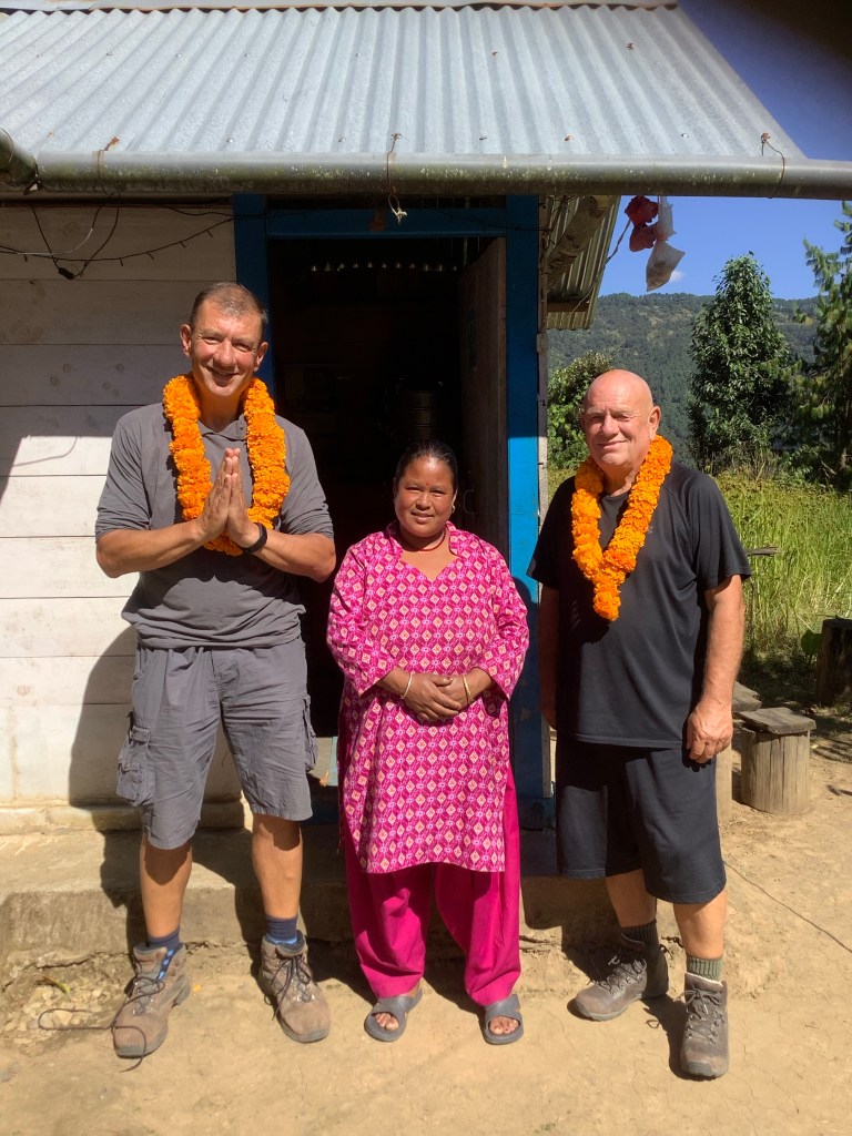 The family had locally distilled spirit, which would have been rude not to try, and they lived very much off the land. As do most Nepalis in this region. We had eaten a big Dhal Bat lunch, the national dish of rice, curried veg, dhal soup and sometimes pickle and popadoms. The lady of the house quoted us £25 to kill one of her chickens for dinner. This was expensive. It would have fed all four of us royally so really for £6 each it’s a British bargain and we had hunted it. But here it was reflective of the long term value of a chicken laying those golden eggs. No mass produced battery hens in Nepal.