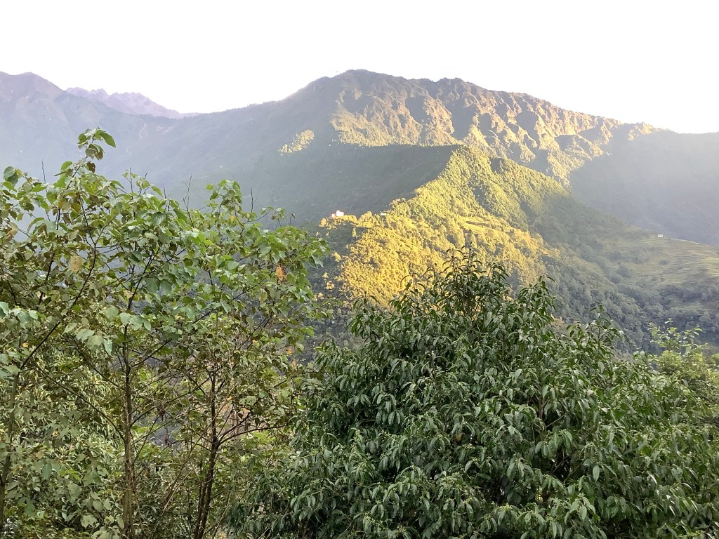 Junbeshi to Banjang is very simple. You climb this big mountain and go down the other side to a bridge of high land that connects your own mountain to another. Not top to top, more like connecting middle to middle. On that bridge is a tea house that is quite isolated. That’s our crash tonight.