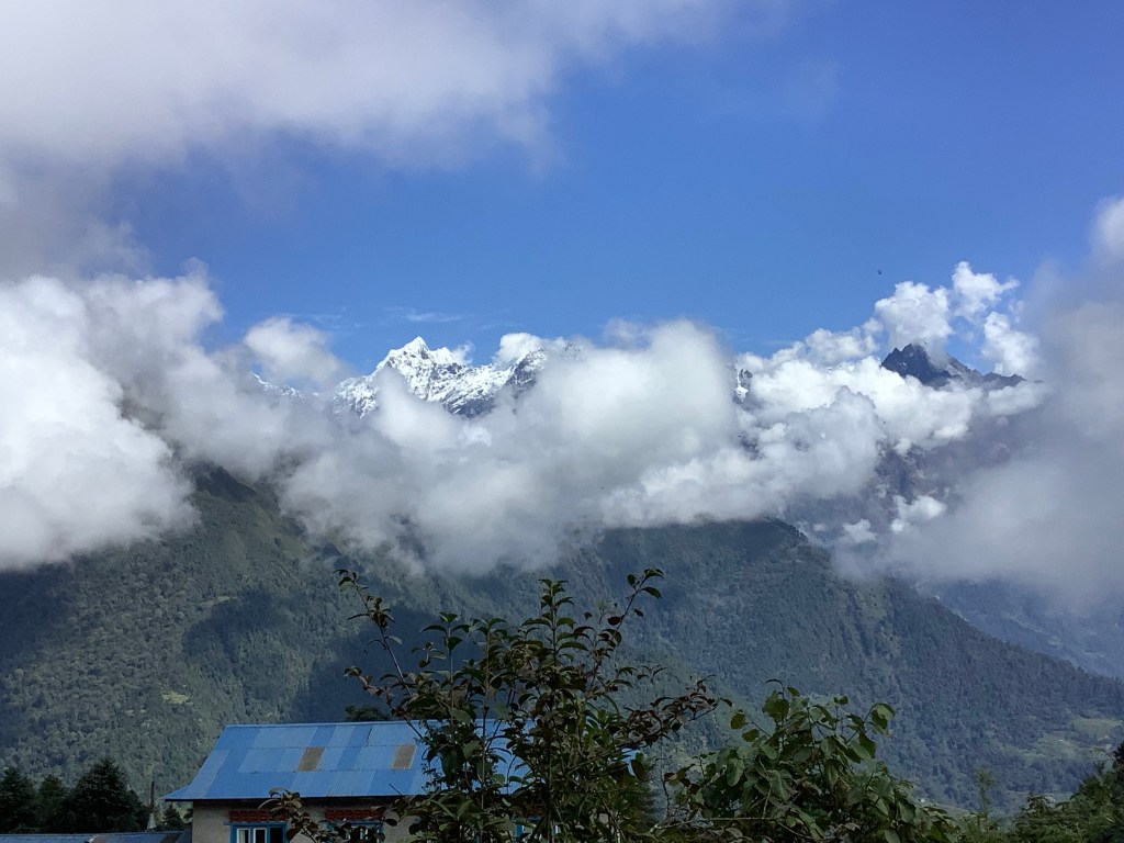 We were climbing forever, clocking up a total of 4 hours ascending, and we were knackered. The climb was steep and it suddenly evened out, with a small village appearing out of the cloud. We found our tea house and there were a group of people outside looking forlorn and fatigued. They had come up in the opposite direction and were drained. And sadly without accommodation.
