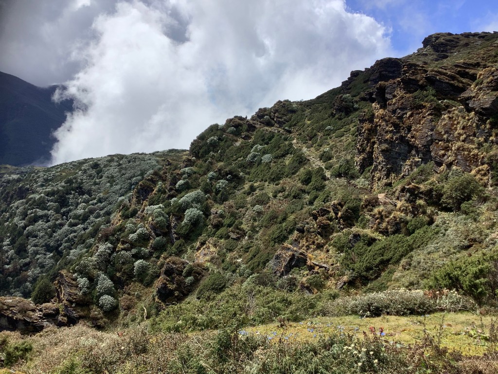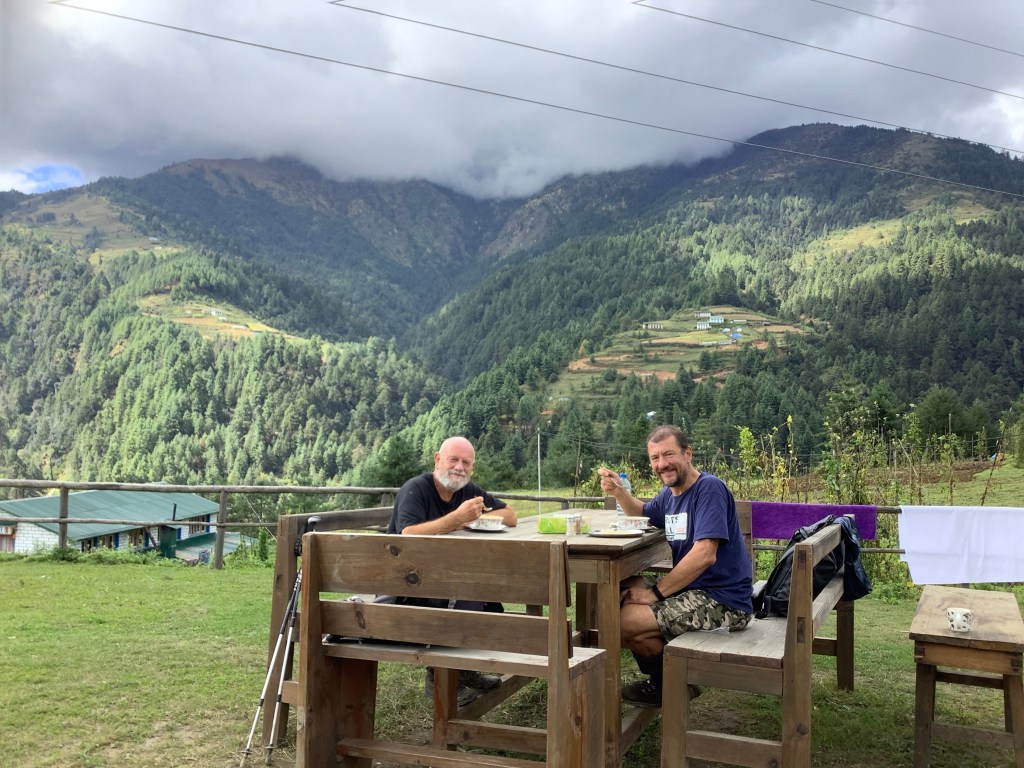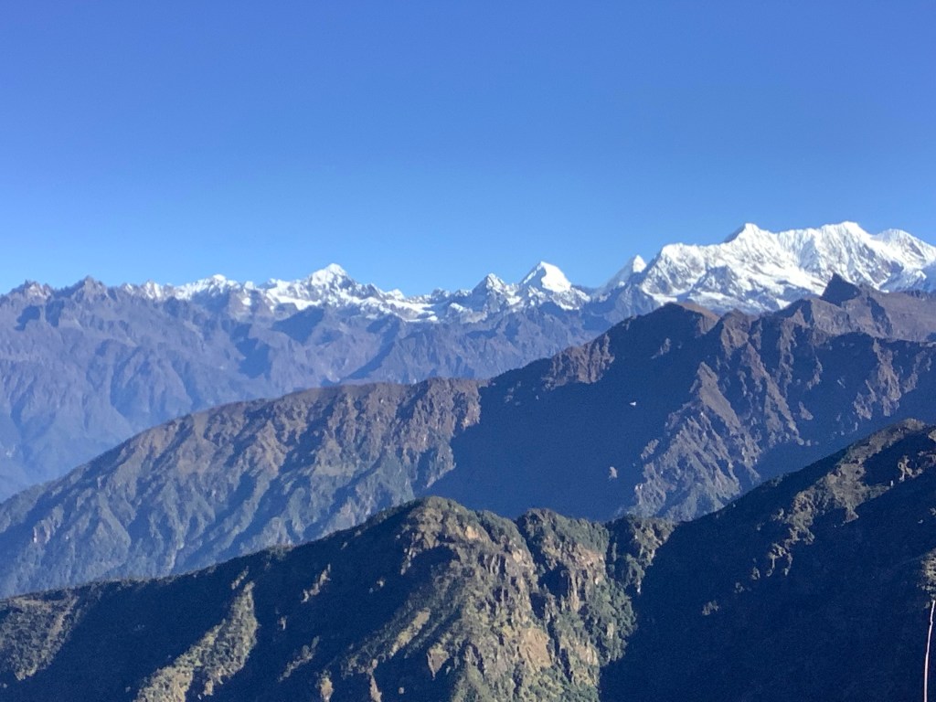 The Himalayas were buzzing in the early morning clear sky. Buzz buzz. Which is unusual because they’re normally peaceful and serene. Our route was likely to be up and down And it Was. Thanks David.
