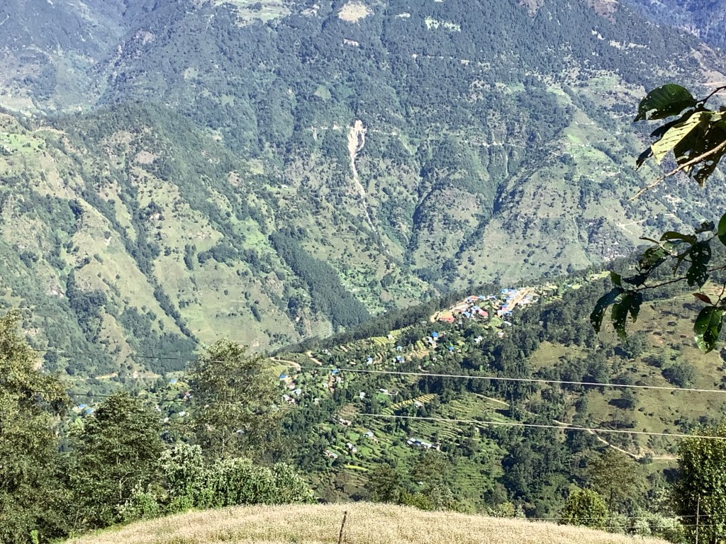 What happens is that you start high up but want to trek down to a village quite a long way away. Most villages are set high in the hills, so even though you’re heading lower, you have to drop way down, cross the river that’s in your way and then climb up really high to the village. And this happens day after day on this route to Jiri. At least we’re as fit as butchers’ dogs at this stage of proceedings.