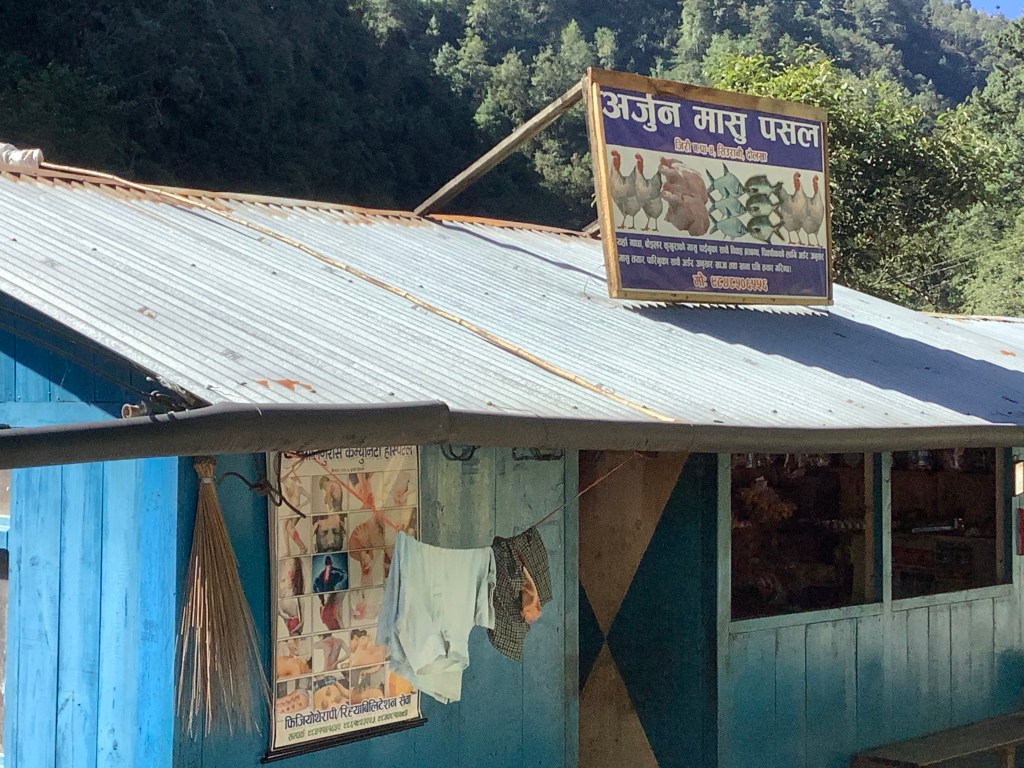 We stopped for lunch at one of the restaurants that catered for hydroelectric workers. No menu – Dal Bhat or Noodle Soup? Noodle soup – yes, yes, yes, yes!