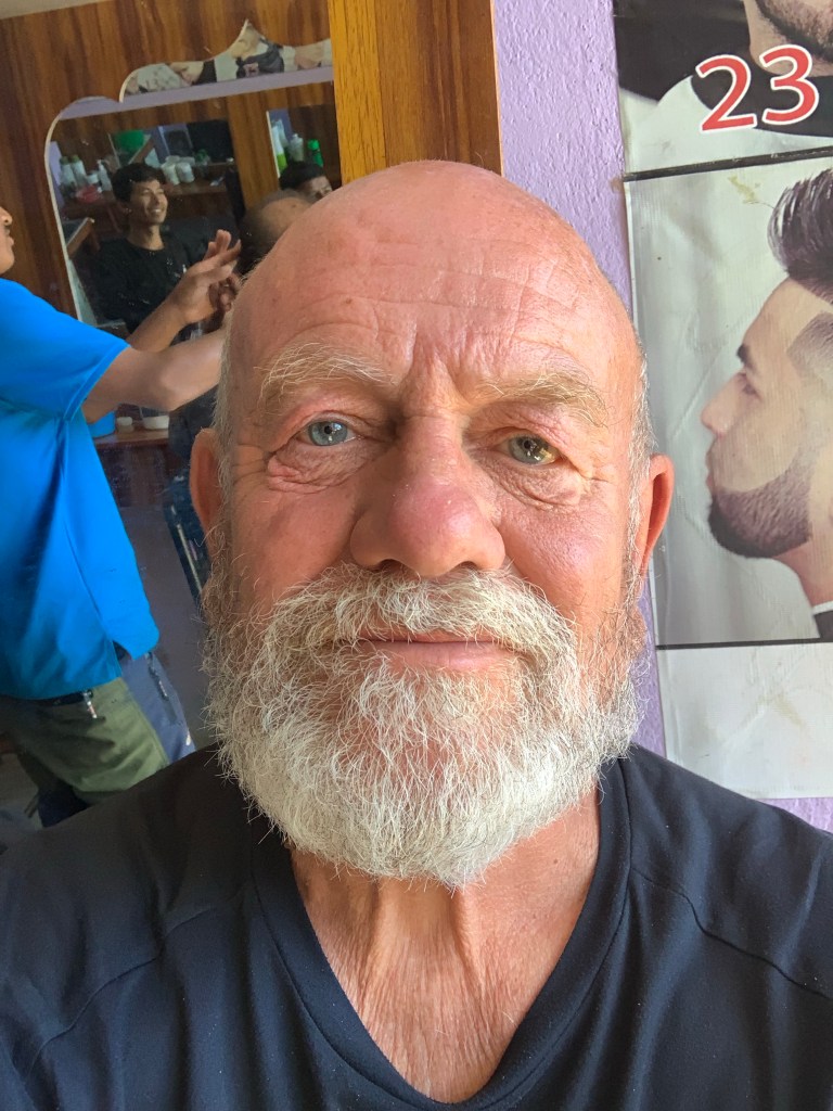 Eating momos, local savoury dumplings, and having a shave and haircut.