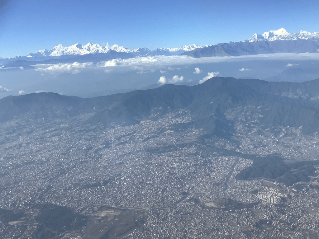 Flying out from Kathmandu today the view was amazing. As if the city was baked on to the valley floor and the Himalayas were floating in the sky!