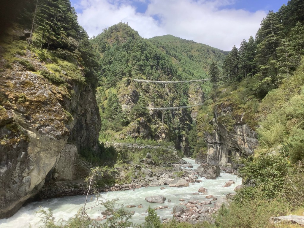 The path crossed the river over a swinging bridge and started to climb. And as it did the most amazing views began to emerge.