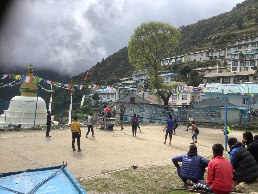 On the way to our accommodation we passed a local volleyball match. No room for football pitches in this terrain.