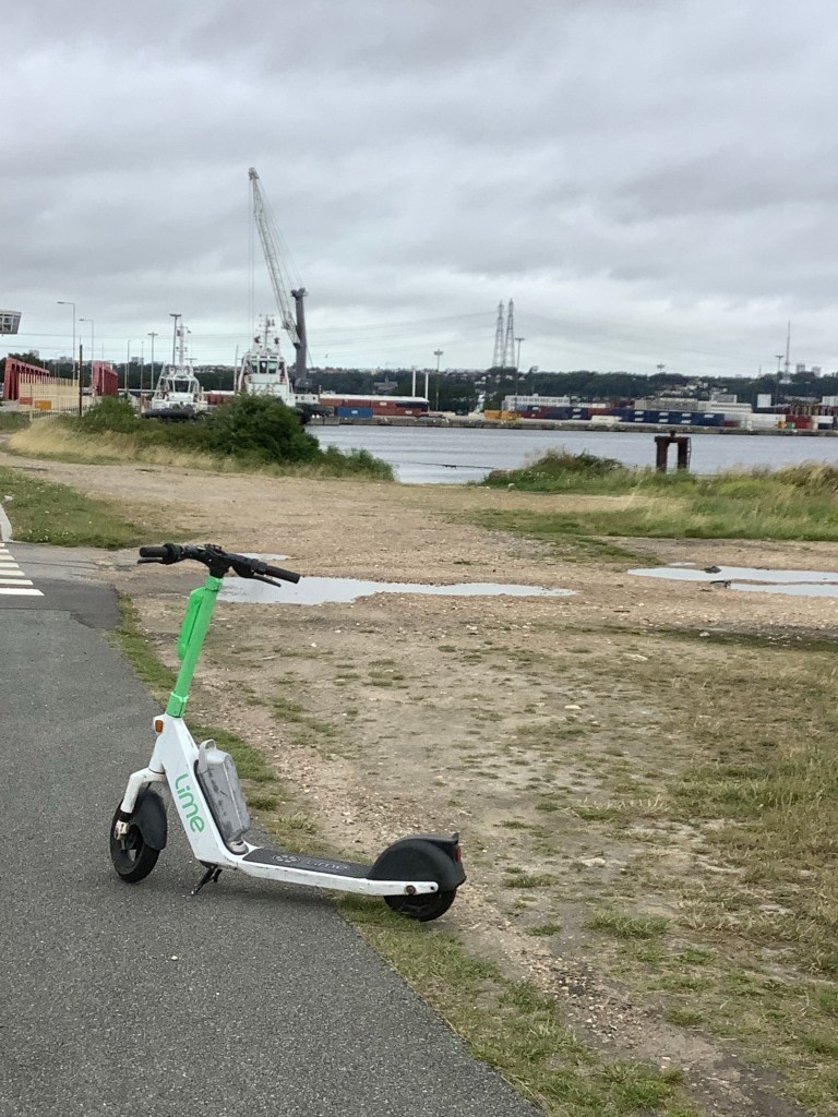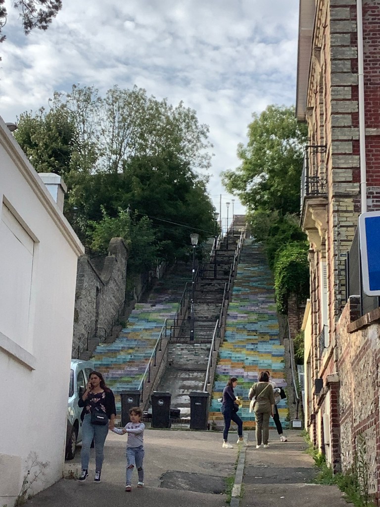 I’ve enjoyed today. The rain started in Etretat but then held off. The paths were far better than I thought. And the piece de resistance was Le Havre. I was skirting the centre, coming down from the north to the east side of the docks area. It’s not attractive and me and Maggie have been in and out of the Le Havre ferry over the years and haven’t spent time in the city. Cop this! It’s west coast USA!