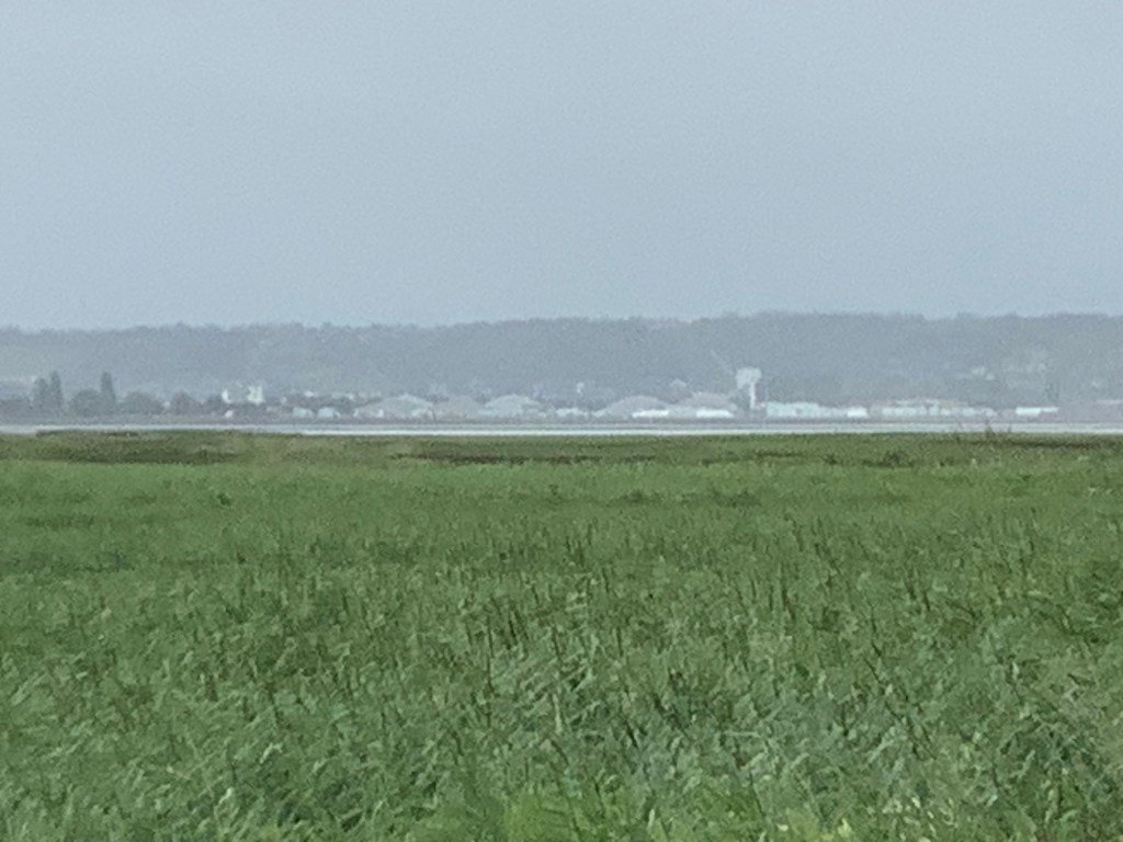 As the road turned to the east, and followed the Seine upstream, I began to feel more relaxed. There were cars every ten minutes and it was more of a natural feel. Eventually the wetlands opened up to my right and suddenly emptiness was friendly rather than threatening. With my first view of Honfleur across the estuary.