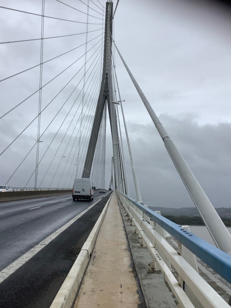My aim was to head south for a few miles, the road then turns eastwards, up the river, to the relatively new Pont de Normandie. It’s a mile long suspension bridge joining Northern Europe and the south, without the need to spend hours in a queue around Paris to cross the river there. But for now I had to grit my teeth and get through wasteland!