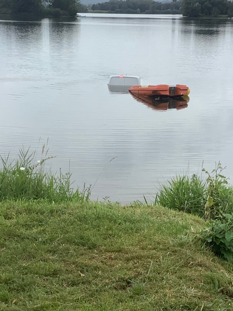 I was tired and set off in a huff. It was overcast and I only had a swig of water for breakfast. Silly old ninny. Walking round the lake things got a little more psychedelic. A couple were stood at the top of a boat launching ramp and they clearly hadn’t understood the basic premise that you reverse your vehicle, with the boat on a trailer, and keep the van dry and the boat afloat. They had somehow gone in van first, and it had sunk, dragging the boat with it! Fair play to the van, its top brake light was still working!