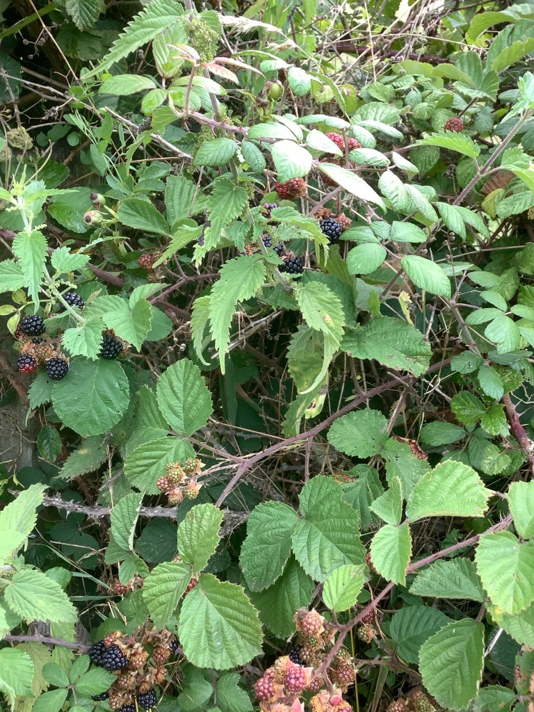 Then breakfast. Most blackberries are green and dry but I came on a few that were fully ripe. Fantastico!