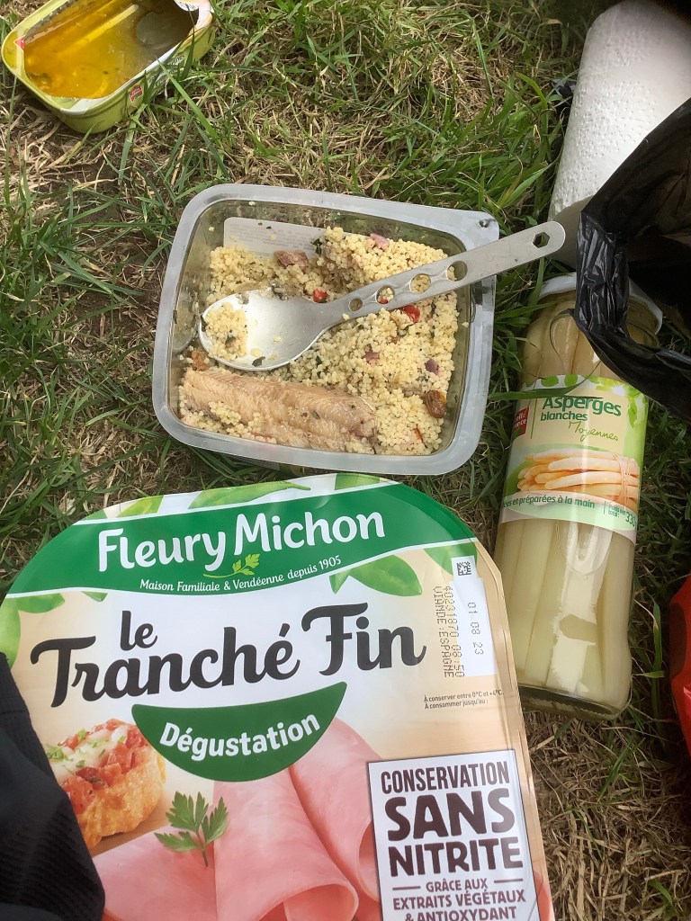 My tent is up, the night is closing in and I must sleep, but not until I’ve eaten my bottled asparagus, tinned sardines, ham slices and taboule.