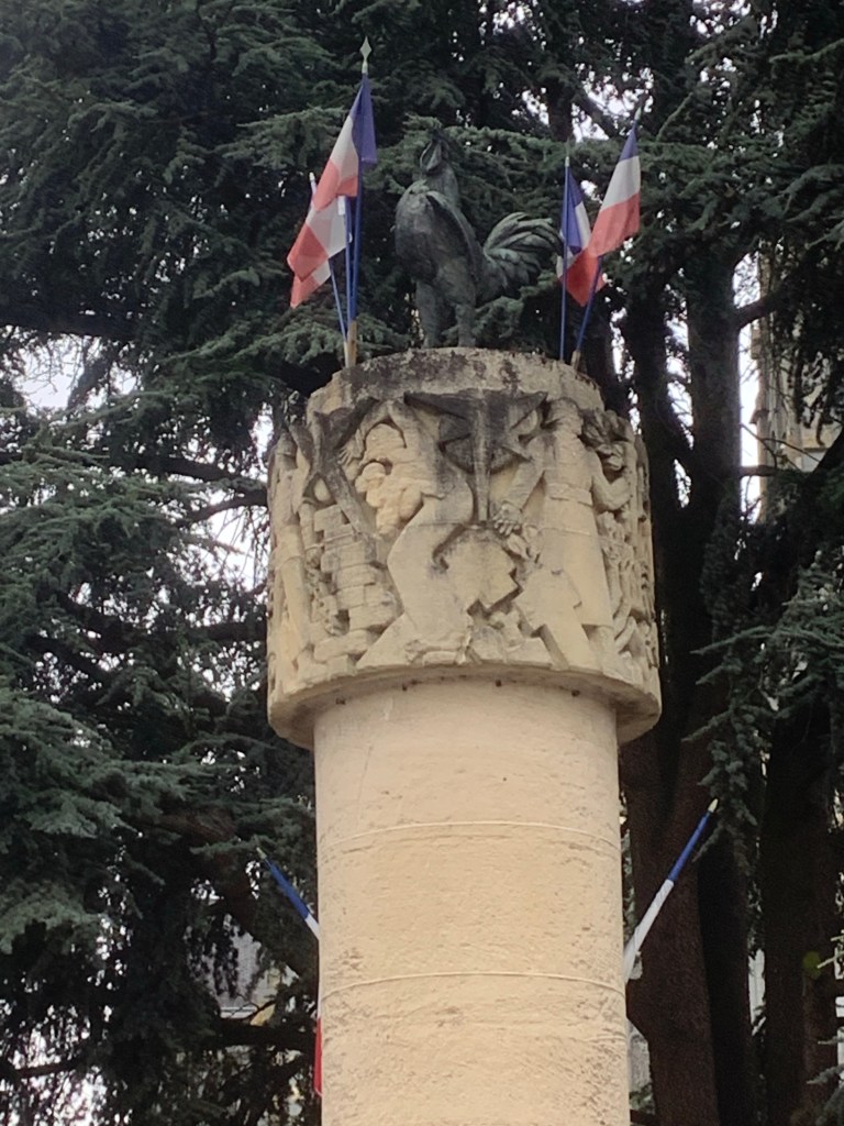 This monument, next to it, was erected to remember the local people who had died in the First World War. In the Yankee bombing it was destroyed, and the cockerel statue on top was badly damaged. In 1955 it was re-erected with the ‘mutilated cockerel’ in it’s proper place, remembering those lost in both wars.