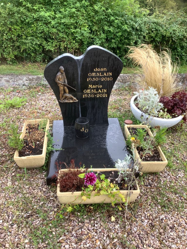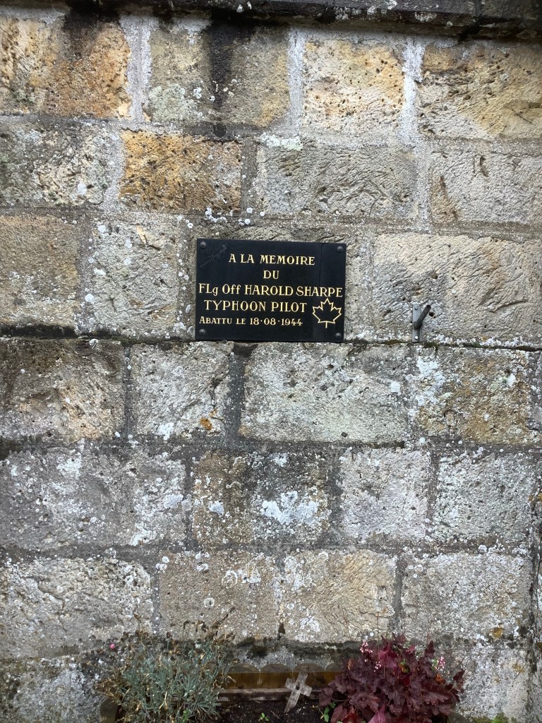 As the maple leaf indicates, he was a Canadian lad who was involved in attacking German vehicles in the area. On a second run his plane was hit by artillery fire and he crashed in a field. He was buried locally but his body was later reburied in Bayeux War Cemetery. His father had lost a brother in WW1 and his two sons in WW2.