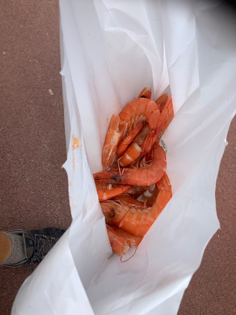 Luckily although the local bar and shops were shut I caught a Saturday seafood stall as it was closing and got a decent bag of decent sized prawns before it closed.