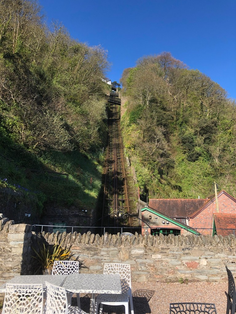 I crossed my route from yesterday, to give continuity, and started to climb the winding Coast Path up to Lynton. The Path wends its way across the steepest railway in the world several times before it reaches Lynton.