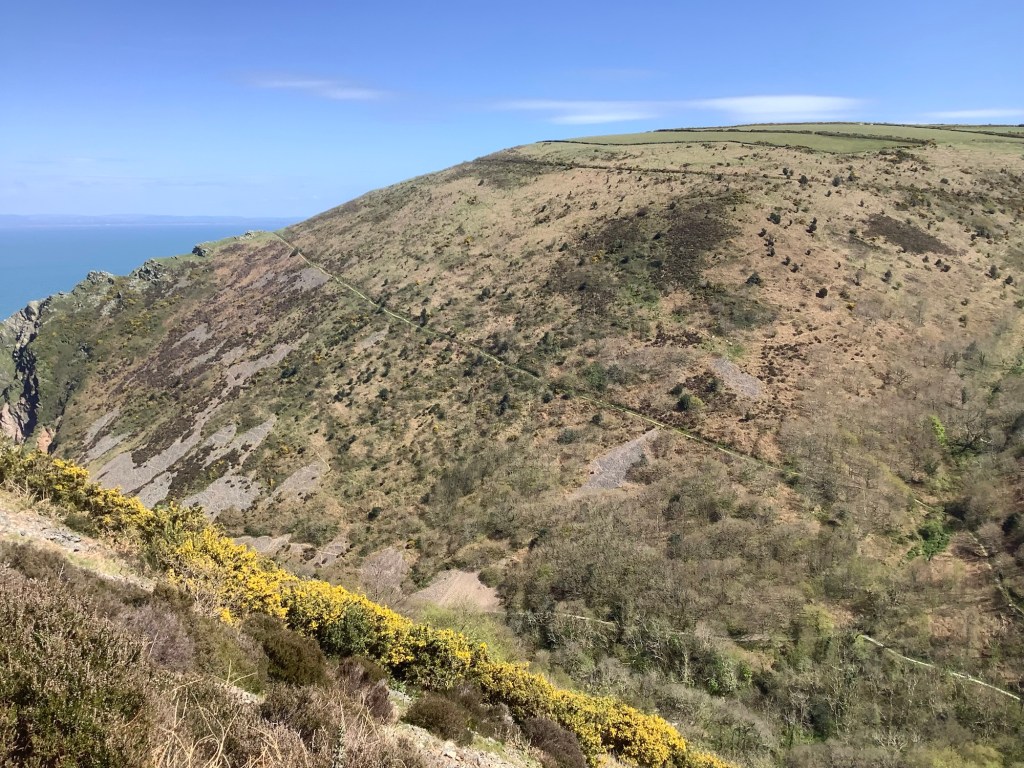 Crossing this hillside revealed more coast, with the Great Hangman being the furthest hill to the right of the photo.