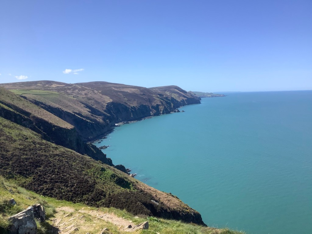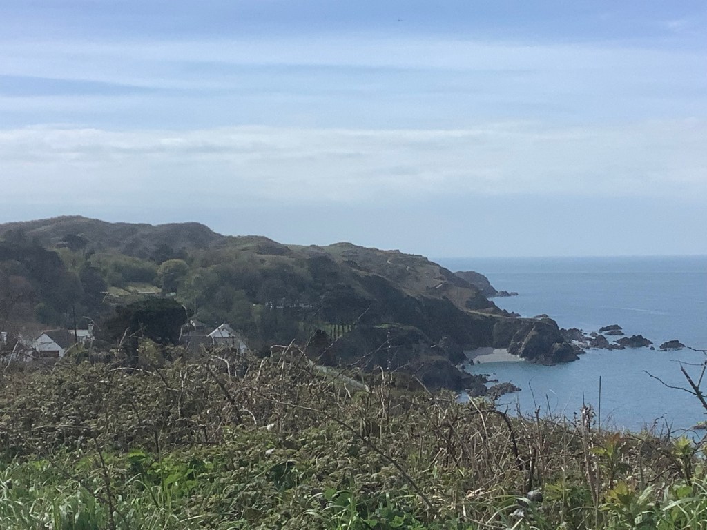 The route began to drop down to the sea and up to the top of hills. Today was going to be a higher elevation, in total of the ups, than the whole of Ben Nevis from sea level to the summit. In beautiful weather, with beautiful views looking forward and back.