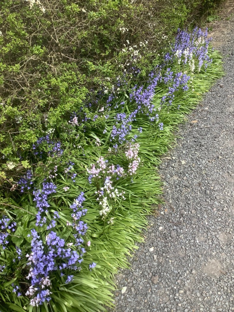 Two miles short of Clovelly I was able to climb up a cliff path to meet the Coast Path, to see a sign that it was 4.5 miles walking this way. In and out, up and down. However, the woodlands I was walking through were beautiful. How English are bluebells!