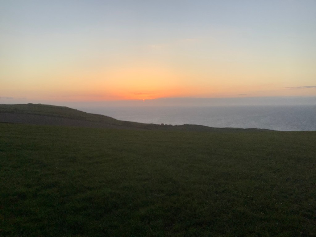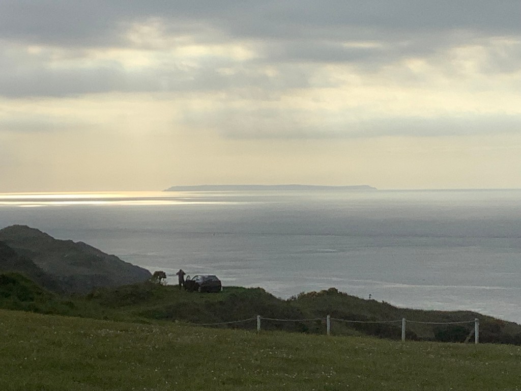 Back to the campsite, just a mile away, and a cold night ahead. But a lovely view of Lundy at sunset.