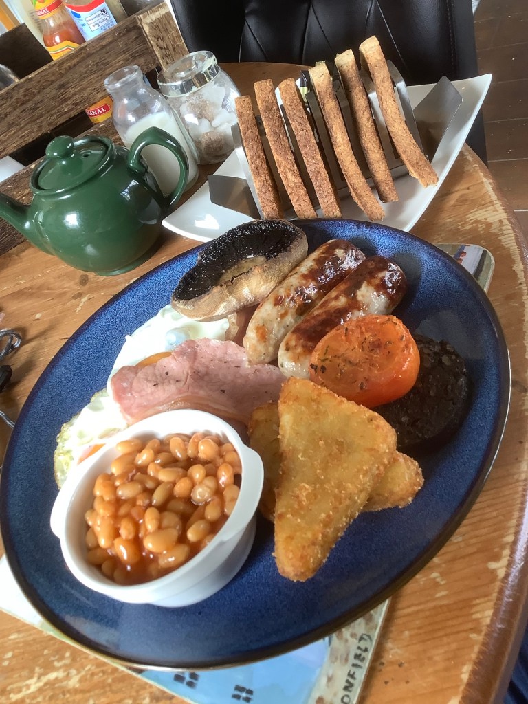 The hills turned flat and I set off into Braunton to find breakfast. And what a full Monty this was.