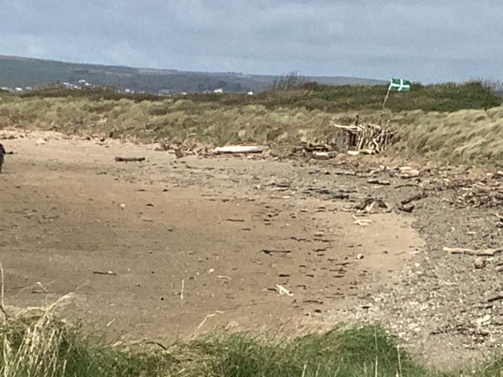 Round towards Saunton the length of the cliffs past Westward Ho! and out towards Hartland Point was intimidating. But that is the remaining westerly impediment to heading southerly to Cornwall. I couldn’t get it on a single photo and it was distant so not too impressive. Unlike the Union Jack flying over Saunton Sands.