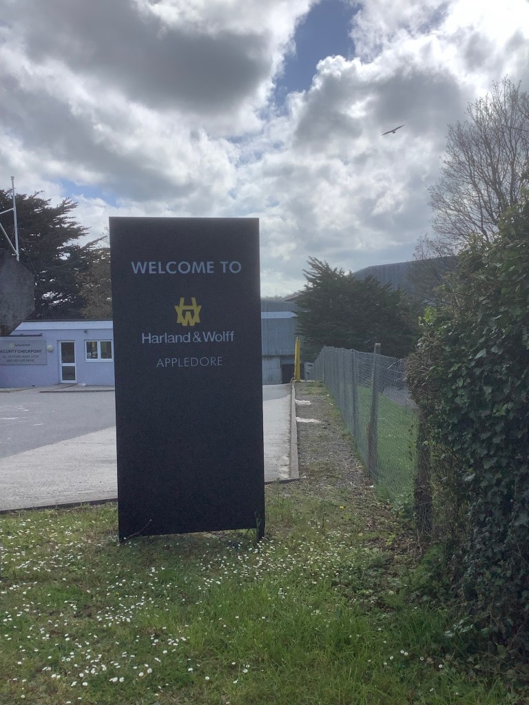 Just before Appledore is the shipbuilding yard which has produced ships since 1855. Harland and Wolff bought the yard recently and shipbuilding is buoyant here, according to a bloke cutting the grass.