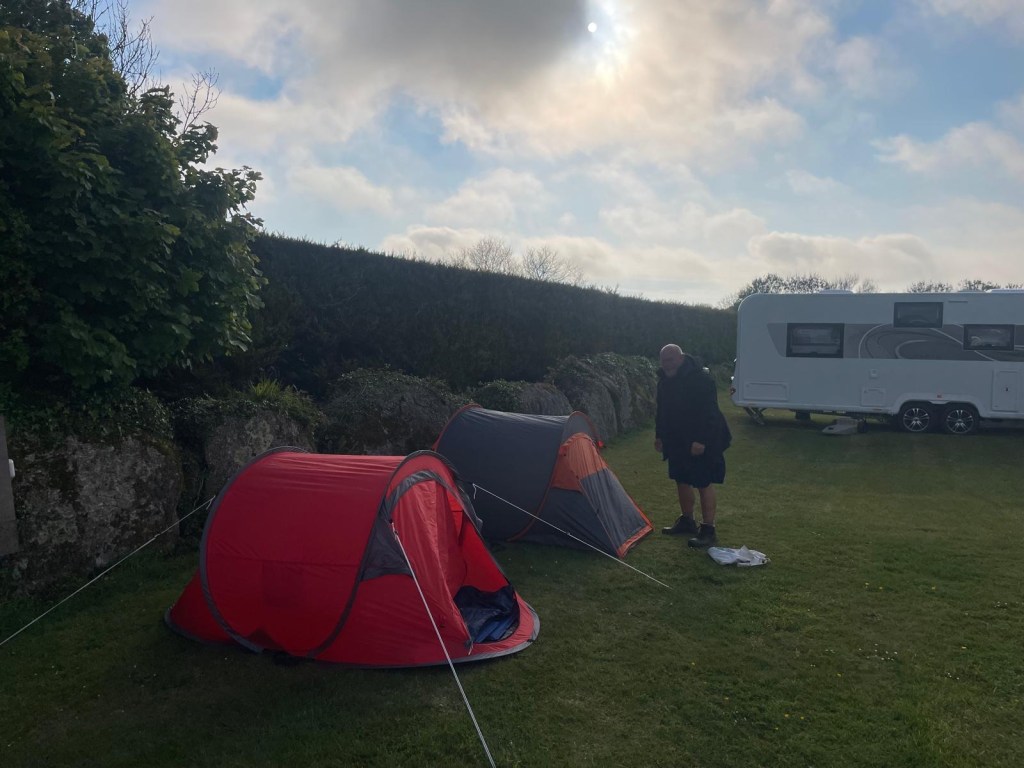 It was a pleasant reunion with my Everest partner and we drove round to St Just, where we were camping at Kelynack campsite. David produced two pop up tents, which we popped up.