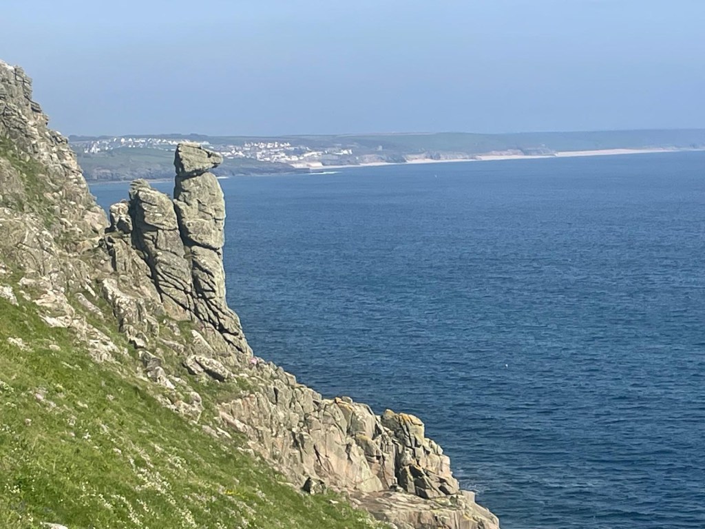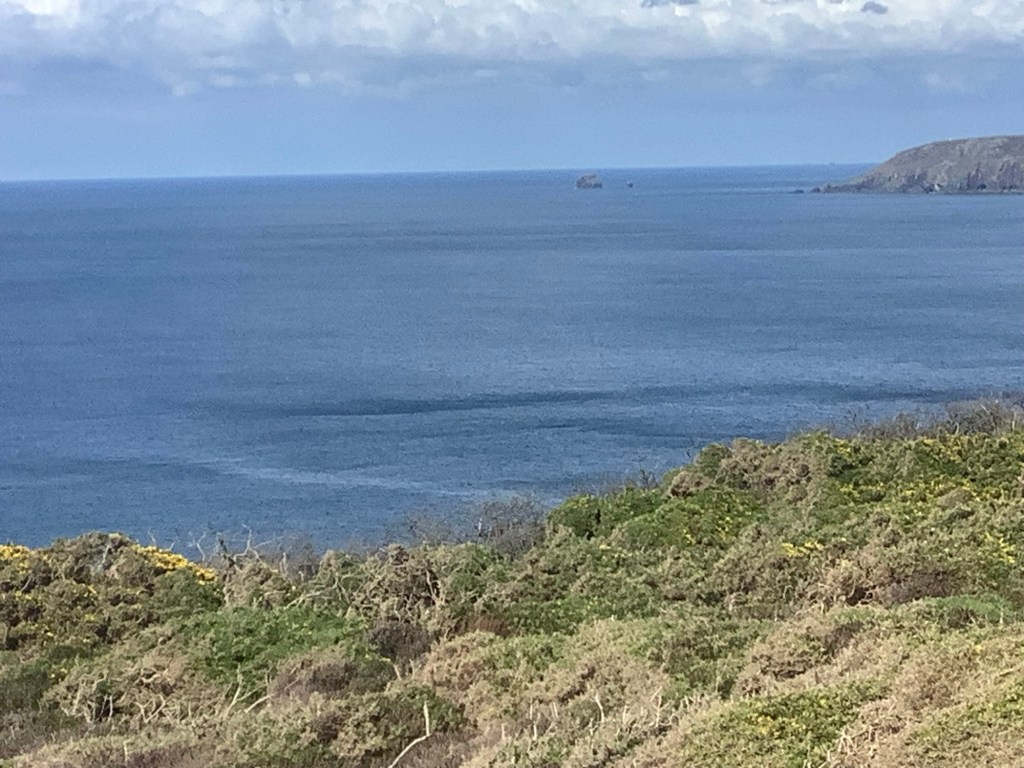 And now I can’t see Lundy Island any more but I can see the headland that houses St Ives, in the very far distance. Signalling the arrival in the next few days of my dear friend David Kilby. My Everest buddy. But not yet.