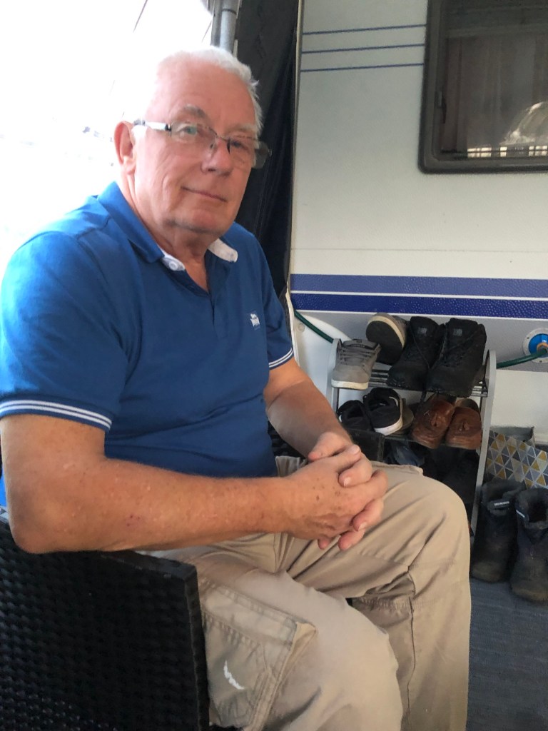 He invited me to join him and his missus for dinner. Did I like pasta and chorizo??? Is the Pope Catholic? I pitched the tarp and whilst I did it he brought me four cans of Malaga lager. Before I got over to Derek and Jo’s place another bloke from the site came over and asked me if I was walking for charity. He gave me £10 and said that it would pay for my ferry and some food tomorrow. A lady in a caravan invited me over for coffee in the morning.
