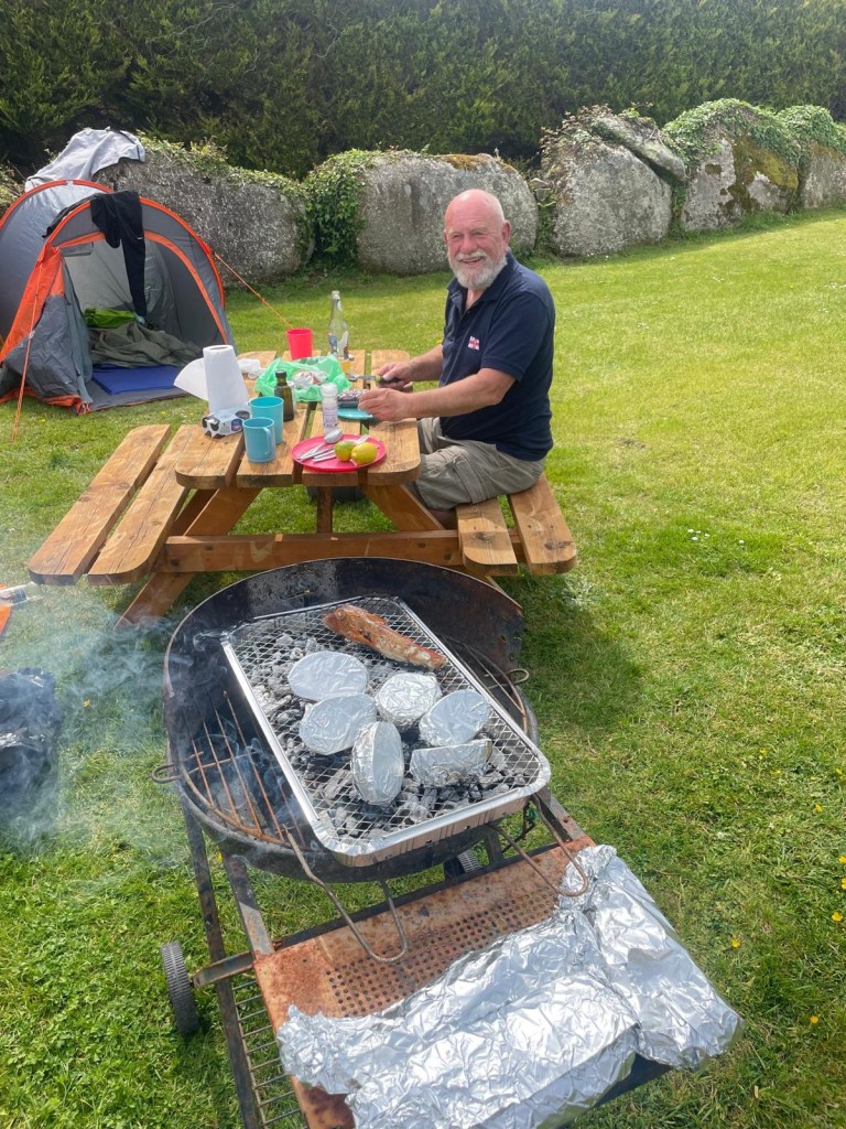 Returning to Porthcurno we collected the car, bought some scran and went back to our lovely site at Kelynack for a barbecue of burgers and sweet peppers.