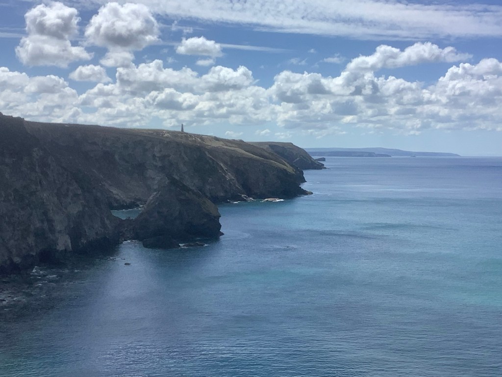 Looking forward we could just see the Pendeen lighthouse half-hidden behind the cliff’s shoulder.