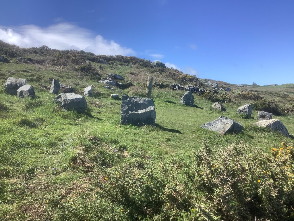 Further round the coast was a stone circle on the cliff top. It looks a bit contrived and more recent than Stone Age. Interesting though.