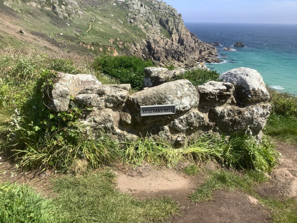 Then we headed up the Channel, eastwards, towards Porthcurno. The path wasn’t too difficult, but it was a long walk, even without rucksacks. Finally we found St Levan’s Well. Thank Christ for that as we didn’t even know he was badly.