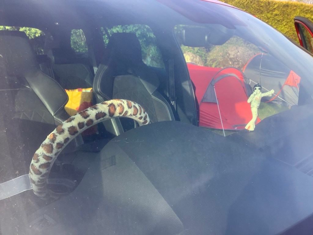 David has a dangling Elvis on his dashboard and a leopard skin steering wheel cover. How cool is that? It’s so lovable that you don’t want to leave the car. But we did.