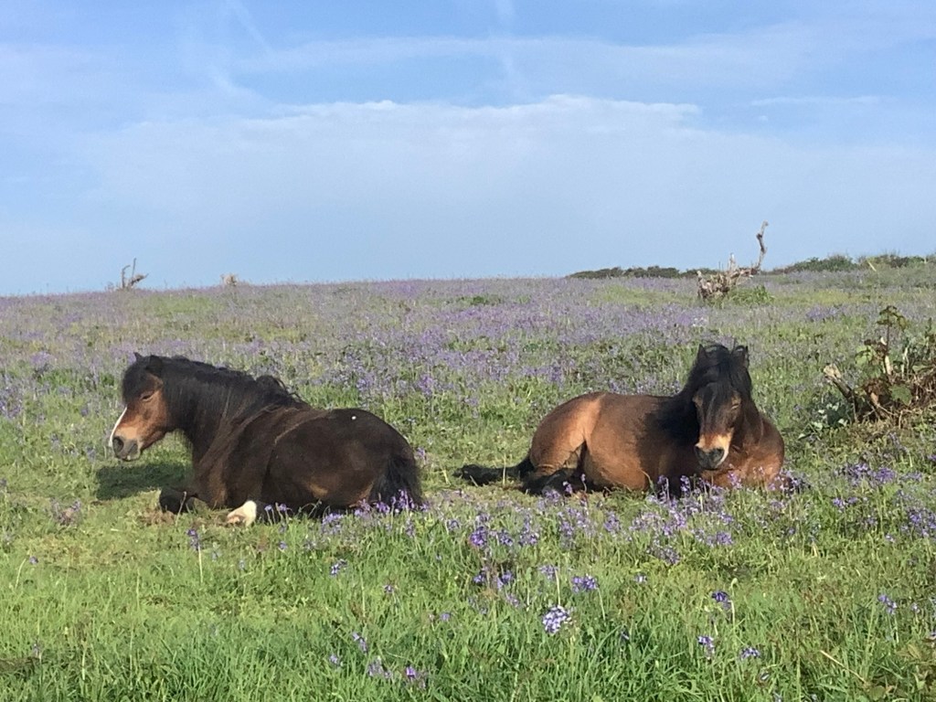 We woke two wild horses sleeping on the bluebells. Sorry kids!